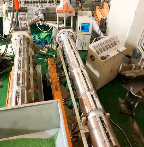 預(yù)制型跑道擠出機_佳德塑機本發(fā)明涉及體育場比賽***跑道,特別涉及一種預(yù)制型橡膠跑道及其制造工藝。背景技術(shù):多年來,傳統(tǒng)預(yù)制型橡膠跑道一直存在產(chǎn)品天候老化性能差的缺點,同時,傳統(tǒng)預(yù)制型橡膠跑道制造工藝一般采用三聯(lián)壓延,采用硫化罐熱空氣硫化,傳統(tǒng)的制造工藝不僅 生產(chǎn)效率低,而且,由于罐體內(nèi)存在溫差大,硫化程度不均勻缺陷,導(dǎo)致產(chǎn)品發(fā)泡孔徑、跑道 回彈值、拉伸強度等指標(biāo)不穩(wěn)定,以至產(chǎn)品容易出現(xiàn)表面裂口、脫層、氣泡等質(zhì)量問題。
